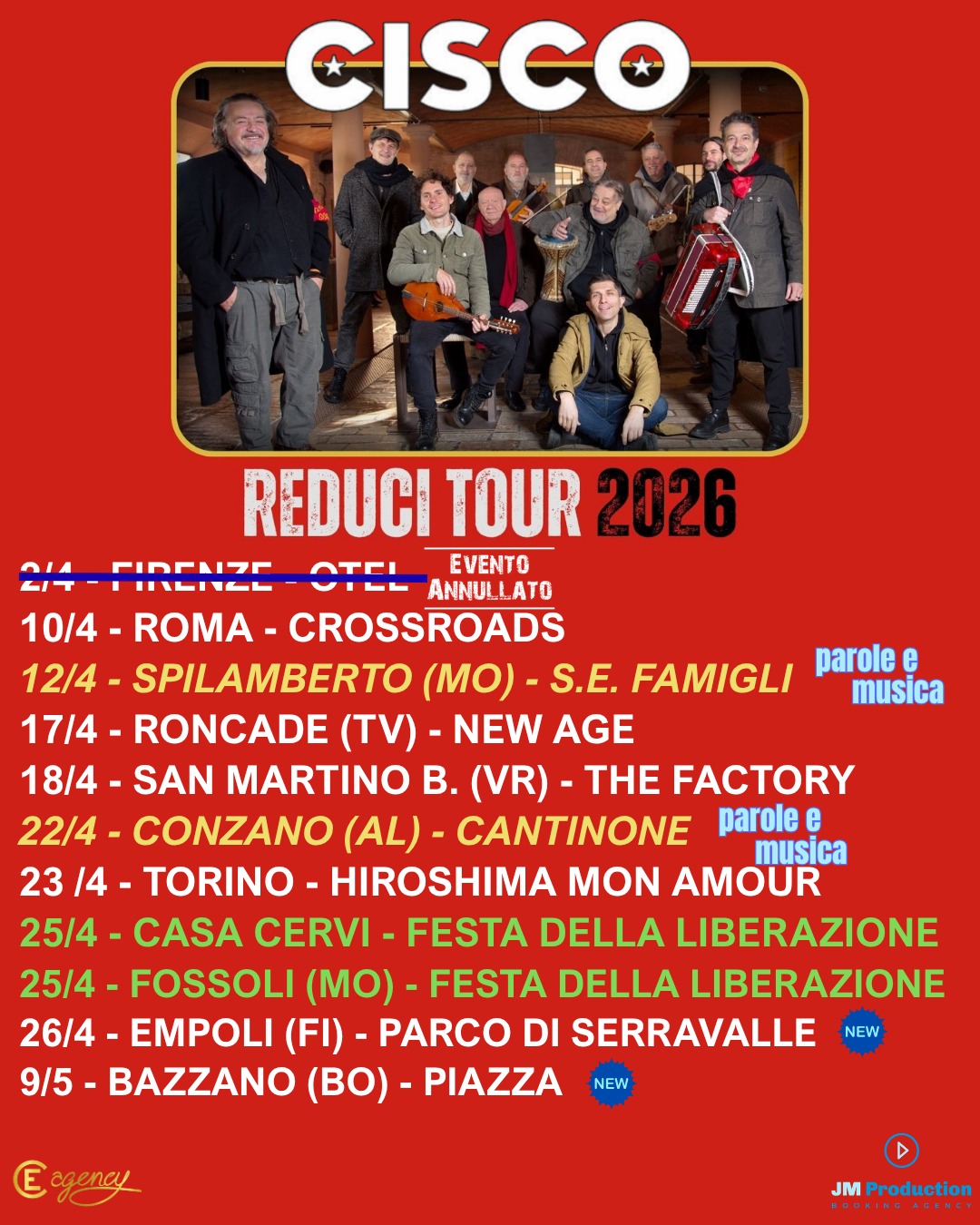 Ecco le prime date confermate del nuovo tour di Cisco per il disco REDUCI in uscita a marzo !