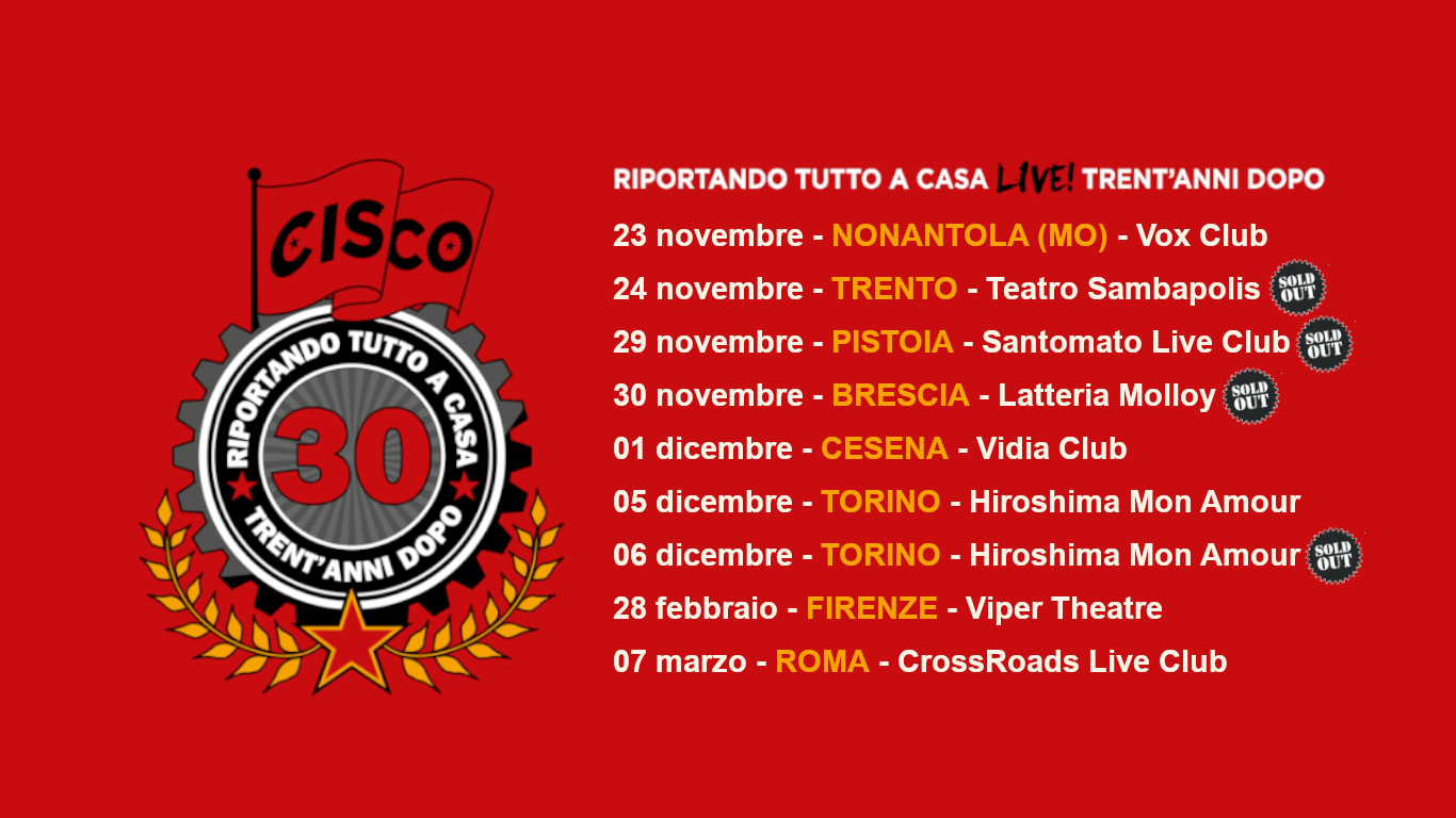Purtroppo è terminato il lungo tour estivo di “Riportando tutto a casa 30 anni dopo”, grazie a tutti per la notevole partecipazione e il calore dimostratoci durante questo lungo tour !