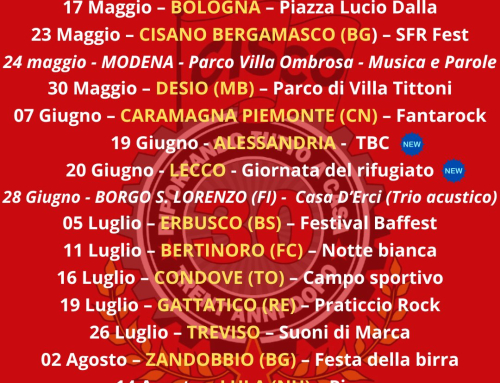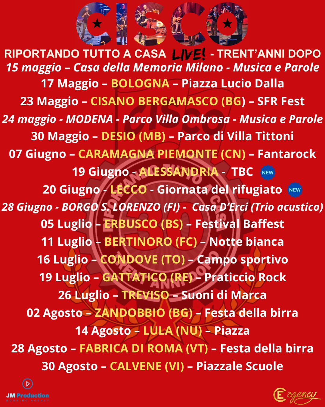 Quest’anno Cisco è stato anche coinvolto come direttore artistico dell’evento e possiamo annunciare la partecipazione degli amici della Bandabardò ad aprire la esta alle ore 13 , poi a seguire ci sarà Cisco con la sua meravigliosa band composta da numerosi ex ramblers, con una versione Resistente del Riportanto tutto a casa tour 30 anni dopo .